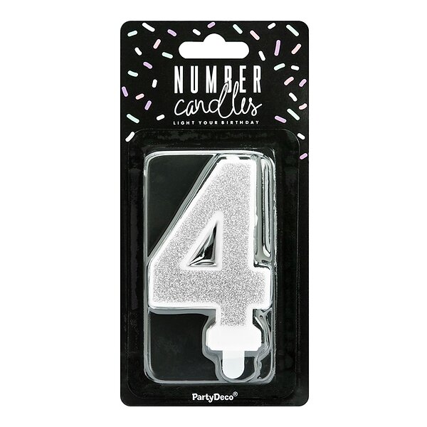 PartyDeco Tårtljus Siffra Silver Glitter Siffra 4