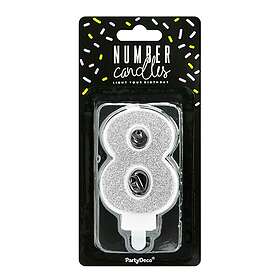 PartyDeco Tårtljus Siffra Silver Glitter Siffra 8