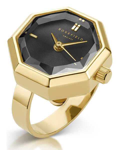Rosefield The Studio Octagonal Watch Ring Black Gold SBGSG-O67