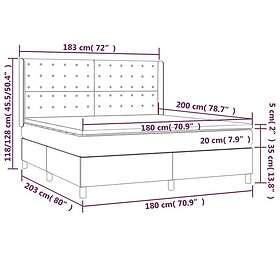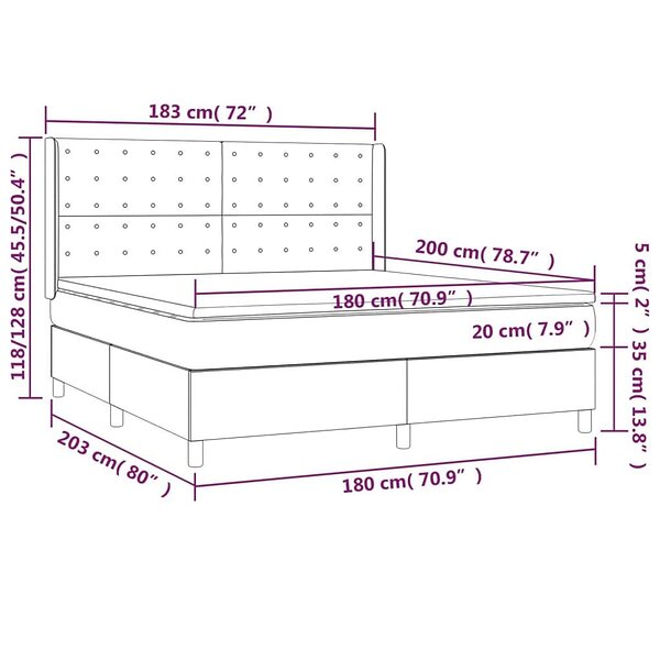 vidaXL Ramsäng med madrass & LED mörkgrå 180x200 cm tyg 3139214