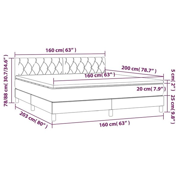 vidaXL Ramsäng med madrass & LED gräddvit 160x200 cm tyg 3133410