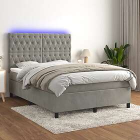 vidaXL Ramsäng med madrass & LED ljusgrå 140x200 cm sammet 3136305