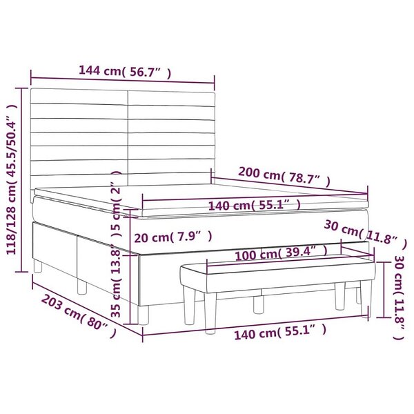 vidaXL Ramsäng med madrass mörkgrå 140x200 cm tyg 3136678