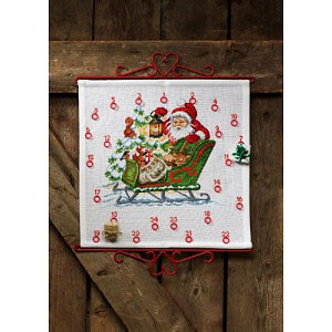 Permin Broderikit Julekalender Dyr i Kælke 40x39cm