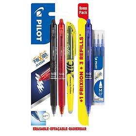 Pilot Frixion Clicker 3-pack med refill och överstrykningspenna