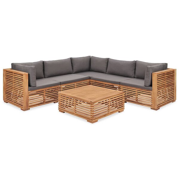 vidaXL Loungegrupp för trädgården med dynor 6 delar massiv teak 3054661