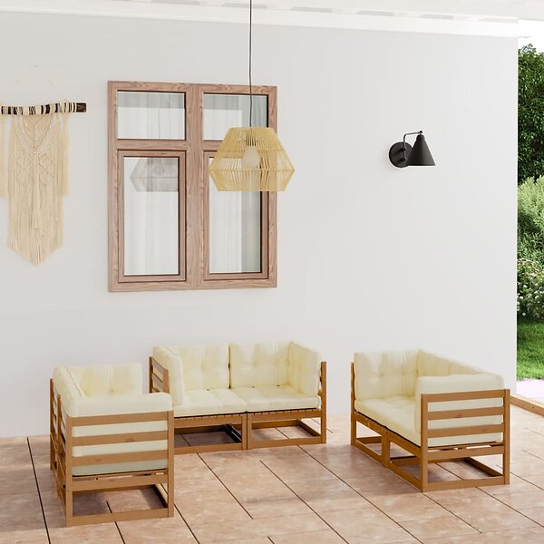 vidaXL Loungegrupp med dynor 6 delar massiv furu 3076492
