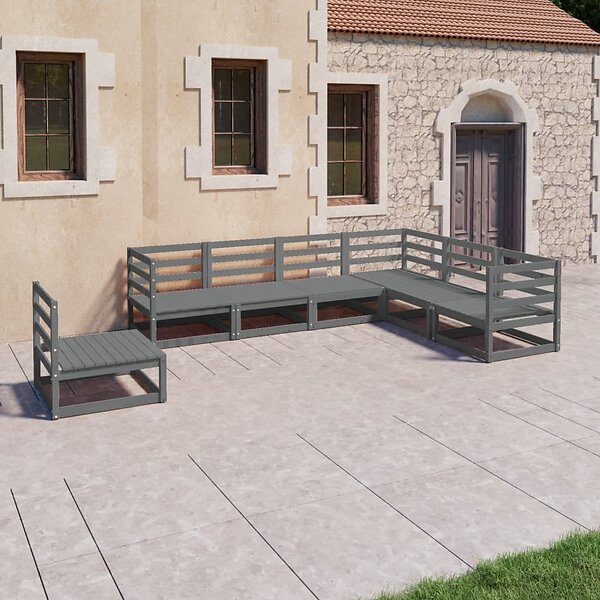 vidaXL Loungegrupp med dynor 7 delar grå massiv furu 3075766