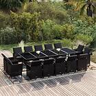 vidaXL Matgrupp för trädgården med dynor 15 delar konstrotting svart 3095587