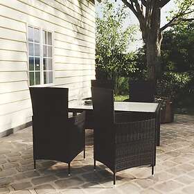 vidaXL udendørs spisebordssæt 5 dele med hynder polyrattan sort
