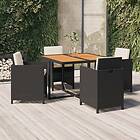 vidaXL spisebordssæt til haven 5 dele med hynder polyrattan sort
