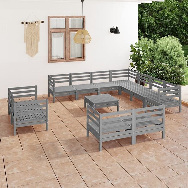vidaXL Loungegrupp för trädgården 12 delar grå massiv furu 3083221