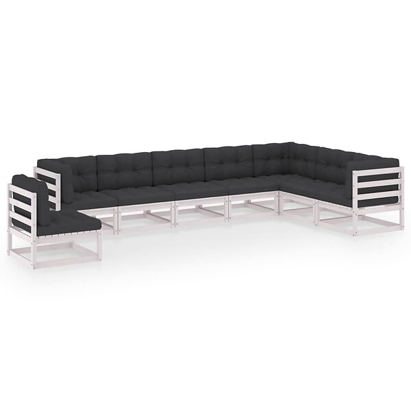 vidaXL Loungegrupp med dynor 8 delar vit massiv furu 3076825