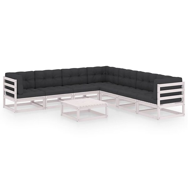 vidaXL Loungegrupp med dynor 8 delar vit massiv furu 3076880