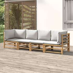vidaXL Loungegrupp för trädgården 4 delar ljusgråa dynor bambu 3155088