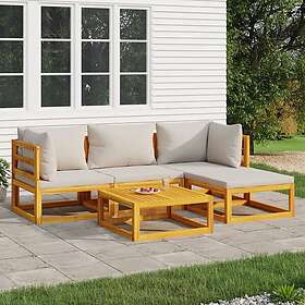vidaXL Loungegrupp 5 delar ljusgråa dynor massivt trä 3155279