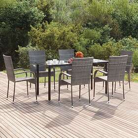 vidaXL Matgrupp för trädgården 7 delar grå konstrottning 3156665