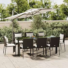 vidaXL Matgrupp för trädgården med dynor 9 delar svart konstrottning 3185112
