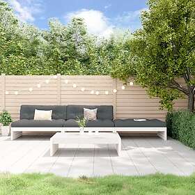 vidaXL Loungegrupp för trädgården med dynor 4 delar vit massivt trä 3186138