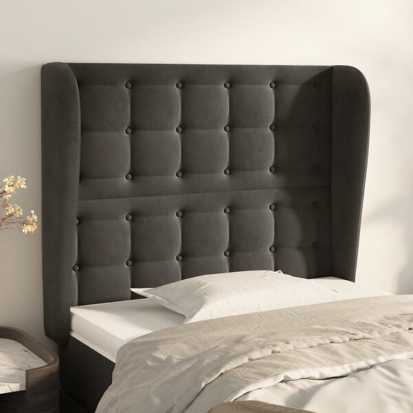 vidaXL Sengegavl med kanter mörkgrå 93x23x118/128 cm sammet 3118427