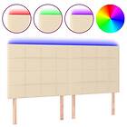 vidaXL Sengegavl LED gräddvit 180x5x118/128 cm tyg 3122443