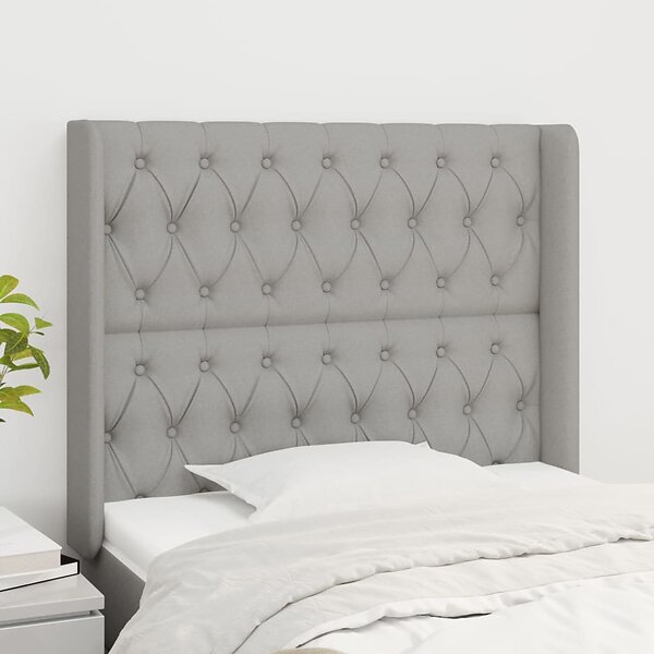 vidaXL Sengegavl med kanter ljusgrå 93x16x118/128 cm tyg 3119898