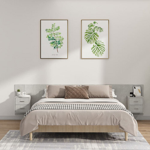 vidaXL Sengegavl med lådor betonggrå konstruerat trä 3115759