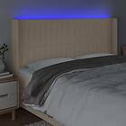 vidaXL Sengegavl LED gräddvit 183x16x118/128 cm tyg 3124305