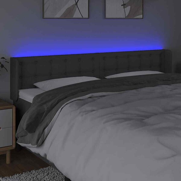 vidaXL Sengegavl LED mörkgrå 183x16x78/88 cm tyg 3123685