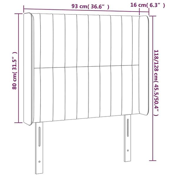 vidaXL Sengegavl LED mörkgrå 93x16x118/128 cm tyg 3124269