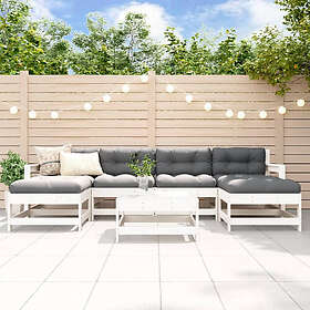 vidaXL Loungegrupp för trädgården med dynor 7 delar vit massivt trä 3185935