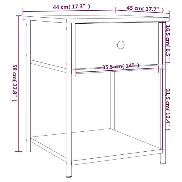 vidaXL Sängbord rökfärgad ek 44x45x58 cm konstruerat trä 825847