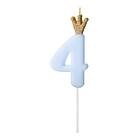 PartyDeco Tårtljus Siffra med Krona Blå 4 år