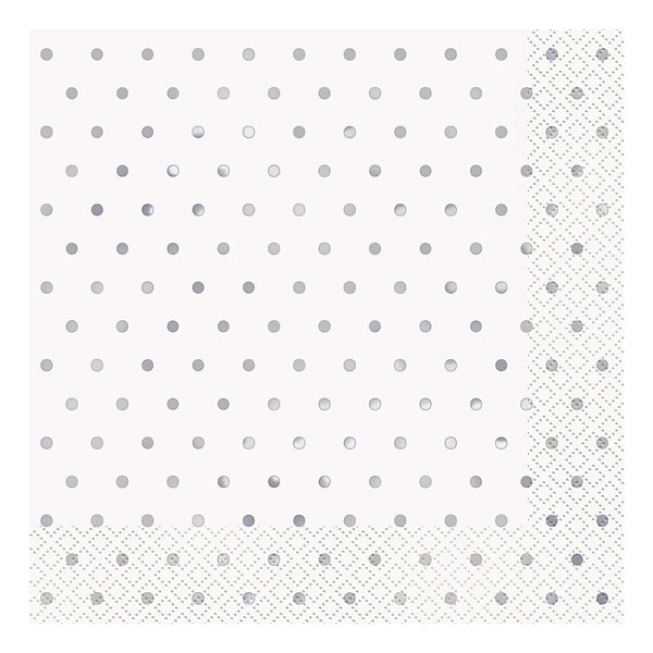 Unique Party Servetter Silver Polka Dot 16-pack