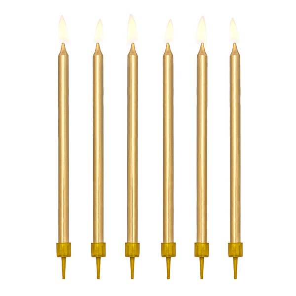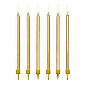 PartyDeco Långa Tårtljus Guld 12-pack