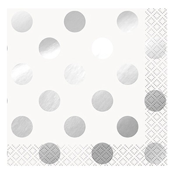 Unique Party Kaffeservetter Silver/Vit Prickiga 16-pack