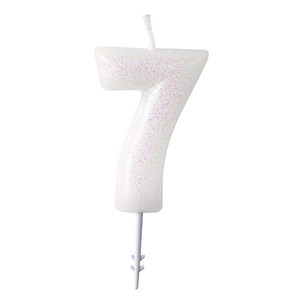 Glitter Tårtljus Vit Siffra Rosa Siffra 7