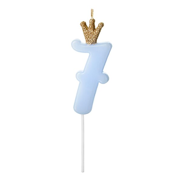 PartyDeco Tårtljus Siffra med Krona Blå 7 år
