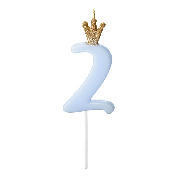 PartyDeco Tårtljus Siffra med Krona Blå 2 år