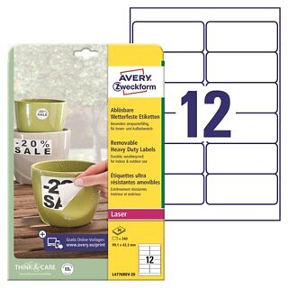 Avery Laseretikett L4776 Avtagbara Vit 99.1x42.3mm