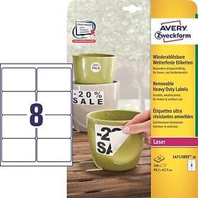 Den laveste pris på Avery Laseretikett Slitstark Avtagbar L4715REV-20 Vit 99.1x67.7mm lige nu er 574 kr. Prisjagt sammenligner priser og tilbud fra netbutikker og fysiske butikker.