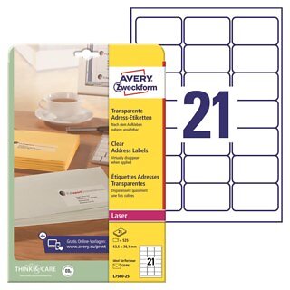 Avery Laseretikett L7560 transparent 63.5x38.1mm