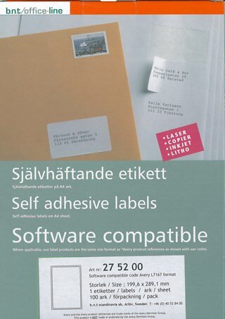 Etikett Laser 289x199mm A4