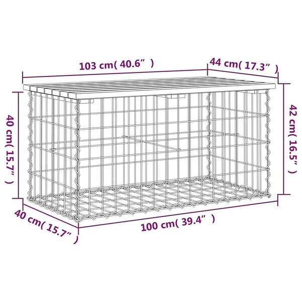 vidaXL Havebænk gabion-design 103x44x42 cm massiv fyrretræ 834359