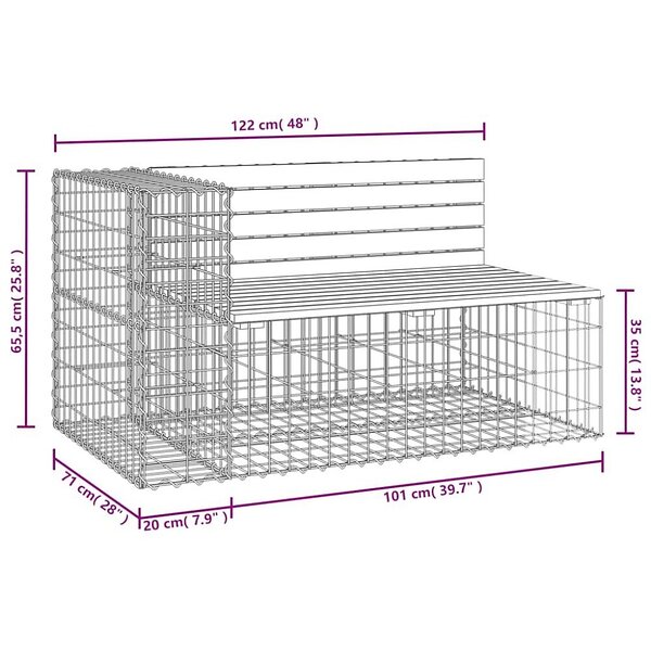 vidaXL Trädgårdsbench gabion-design 122x71x65.5 cm massiv furu 834383