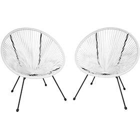 TecTake 2 trädgårdsstolar Santana Retro i Acapulco-stil vit