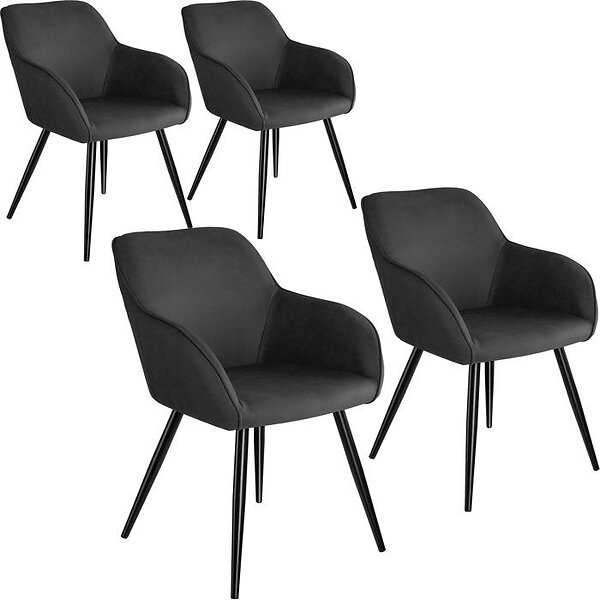 TecTake 4x Chair Marilyn tyg antracit/svart