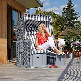 TecTake Strandkorgstol med dyna, inkluderar överskyddsdrag grå/vit