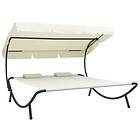 vidaXL Solsäng med tak och kuddar gräddvit 48068