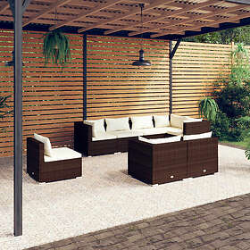 vidaXL Loungegrupp för trädgården m. dynor 8 delar konstrotting brun 3102610